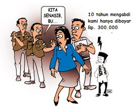 Namun, bagaimana dengan guru non-PNS alias guru honorer dan guru di sekolah swasta kecil? Tentu saja guru honorer dan swasta kecil tidak seberuntung guru PNS, karena mereka tidak menikmati gaji sebesar guru PNS. Begitu pula dengan tunjangan lainnya, seperti tunjangan sertifikasi, tidak semua guru menerimanya. Ada pula guru honorer yang hanya menerima honor Rp 200.000 hingga Rp 300.000 setiap bulan. Jauh lebih kecil dibandingkan dengan upah minimum regional (UMR) di daerah manapun di Indonesia. Padahal mereka bekerja penuh waktu dan memiliki tanggung jawab sama dengan guru PNS.